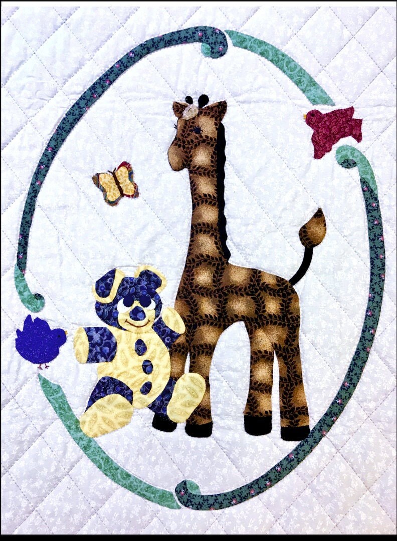 Baby Crib Quilt - Giraffe and teddy bear, adorable Printable Applique Pattern and also whole cloth pattern..