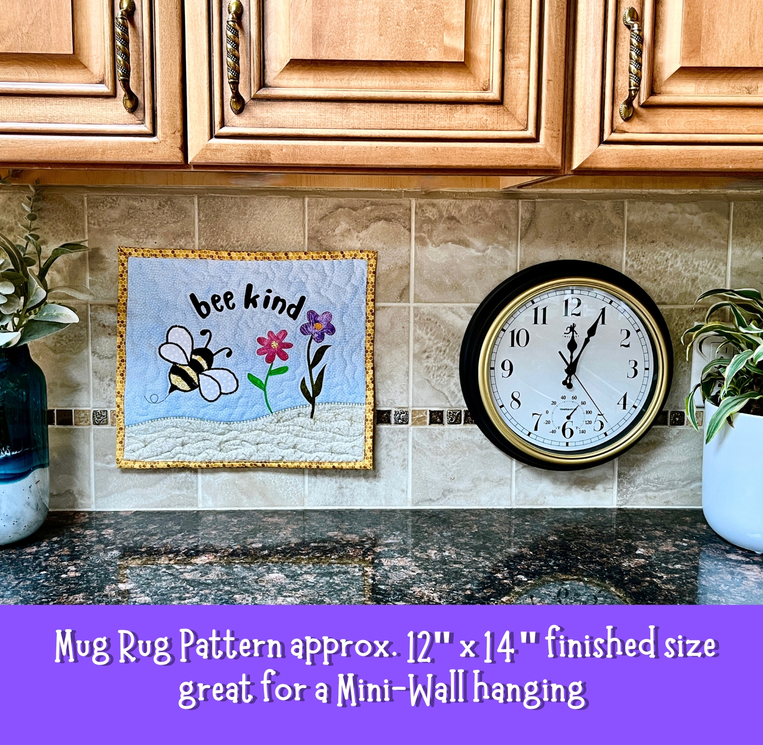 Bee Kind Mini Quilt - Mug Rug - approx 12"x 14" with complete Instructions - Digital Instant Download Pattern