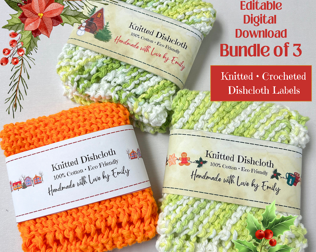 Knitted or Crocheted Christmas Dishcloths are excellent for Craft Fairs, Church Bazaars, or as Gifts! Add your brand to sell - Includes a FREE Easy Knit Dishcloth Pattern!