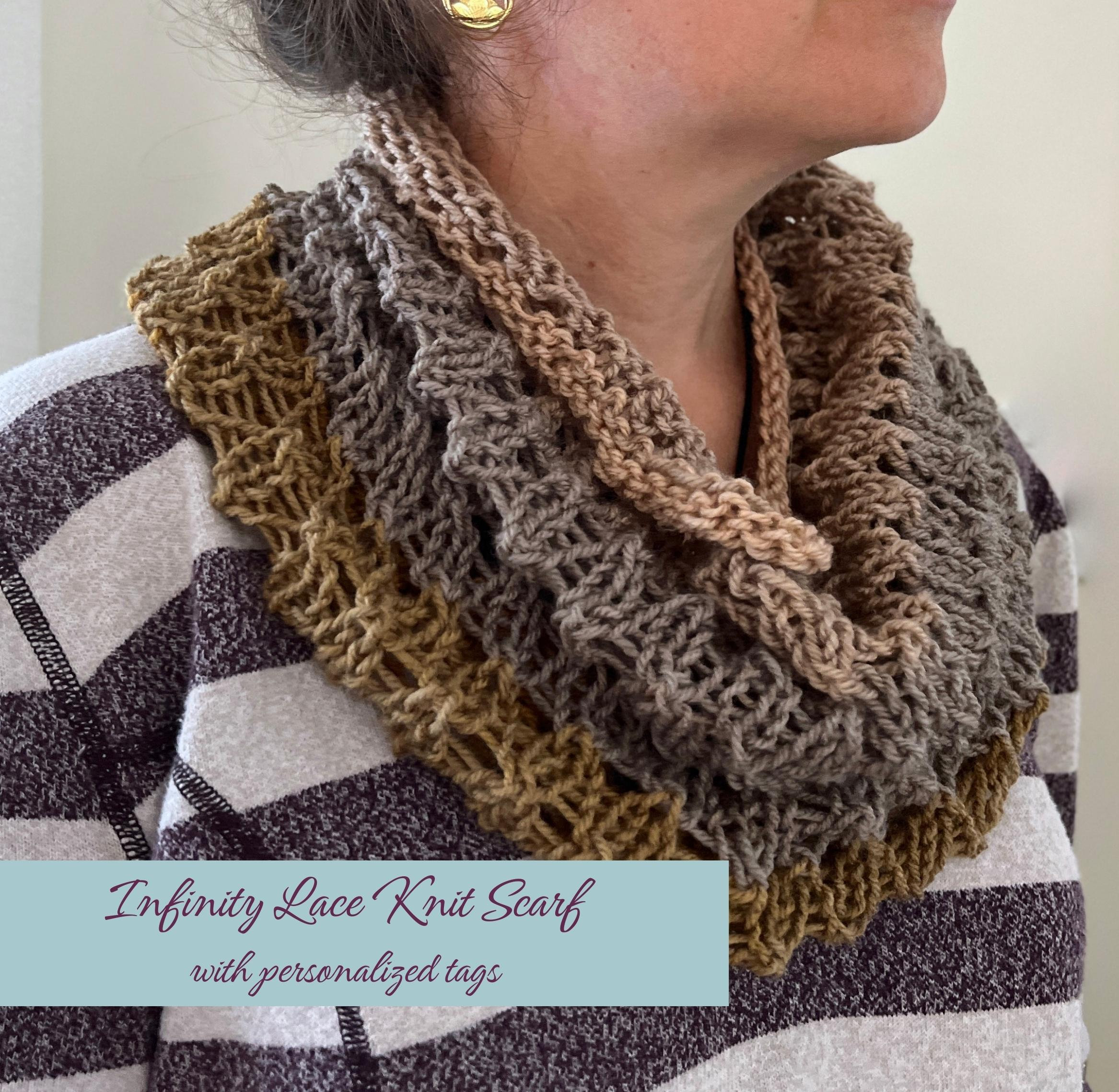 Personalized Easy Infinity Knit Scarf Pattern is excellent for Craft Fairs, Church Bazaars, or as Gifts!