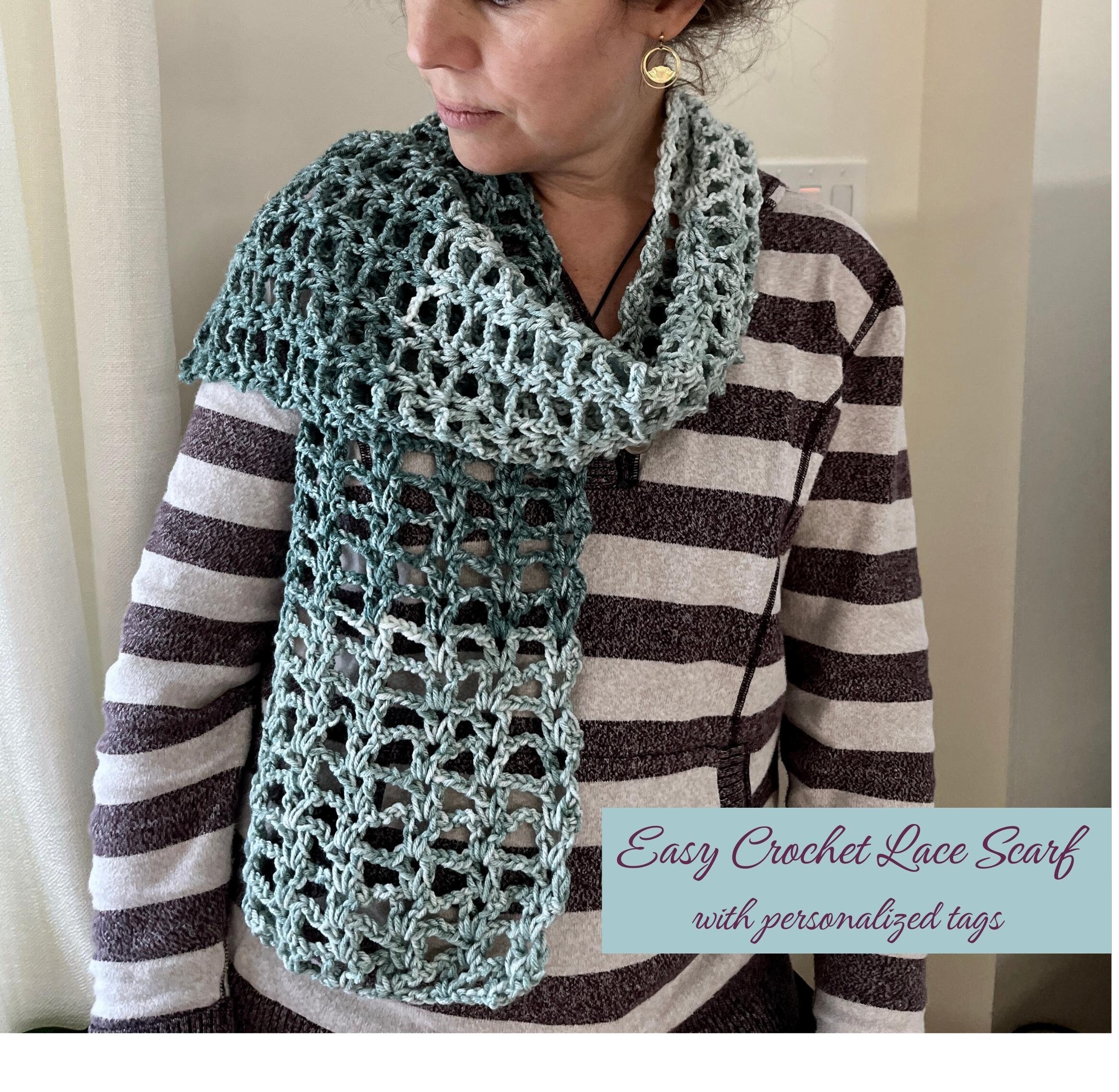 Easy Lace Crochet Scarf Pattern with tags for retail branding or for Gifts
