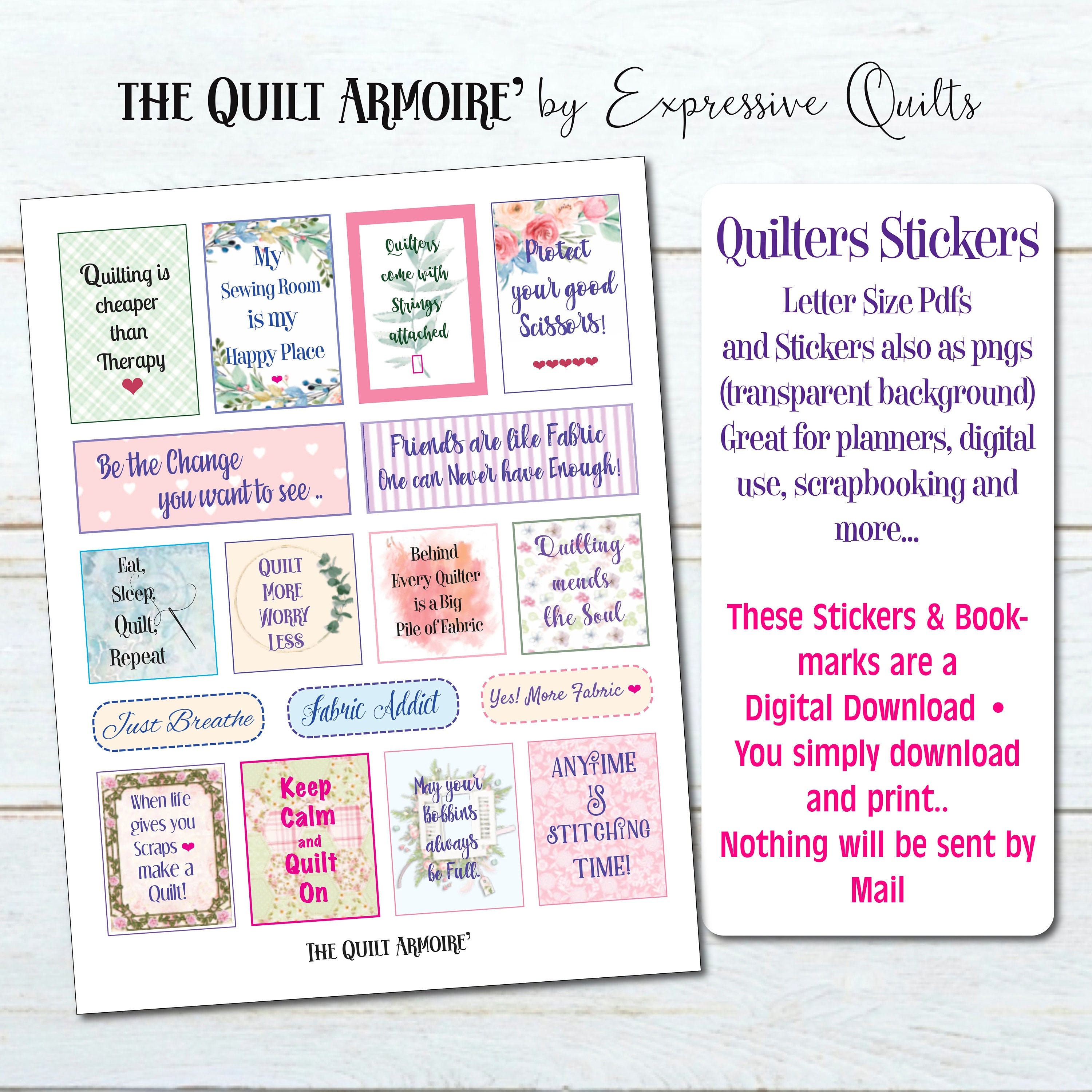 Quilters Bookmarks & Stickers, 5 files Letter Size, Pdf, and Pngs - Digital Download Printable